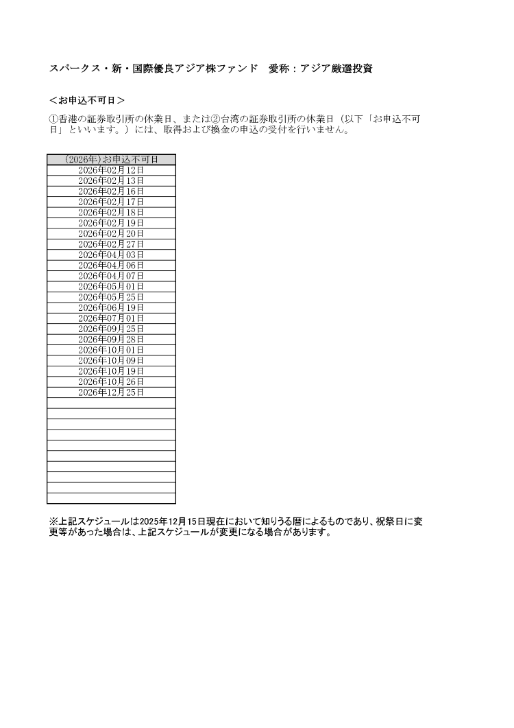 お申込不可日 | スパークス・アセット・マネジメント